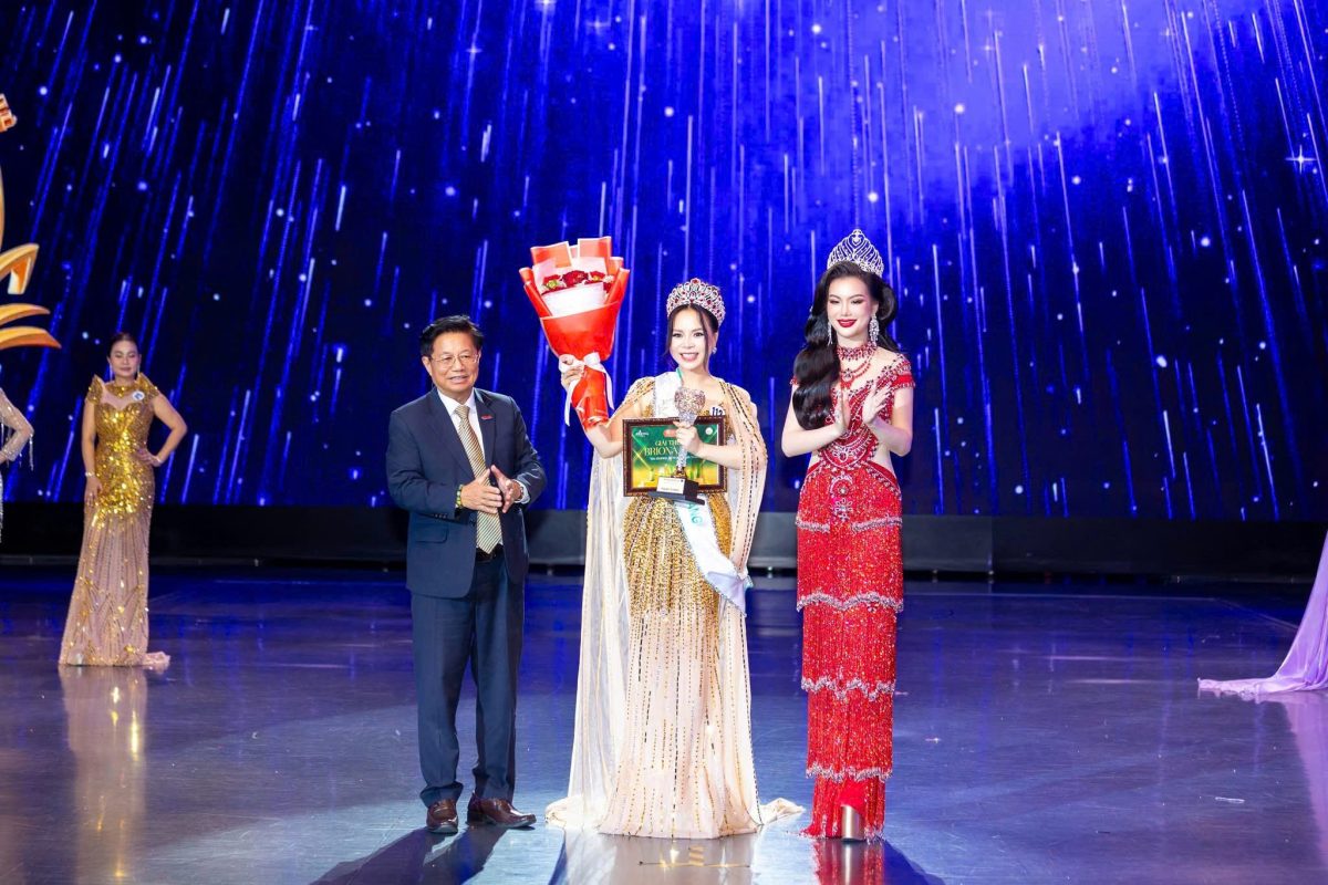 (Đại tá – nhà báo Trần Thế Tuyển và Hoa Hậu Jennifer Ly trao giải Hoa Hậu Tài Năng của Miss Business Charm International 2025)