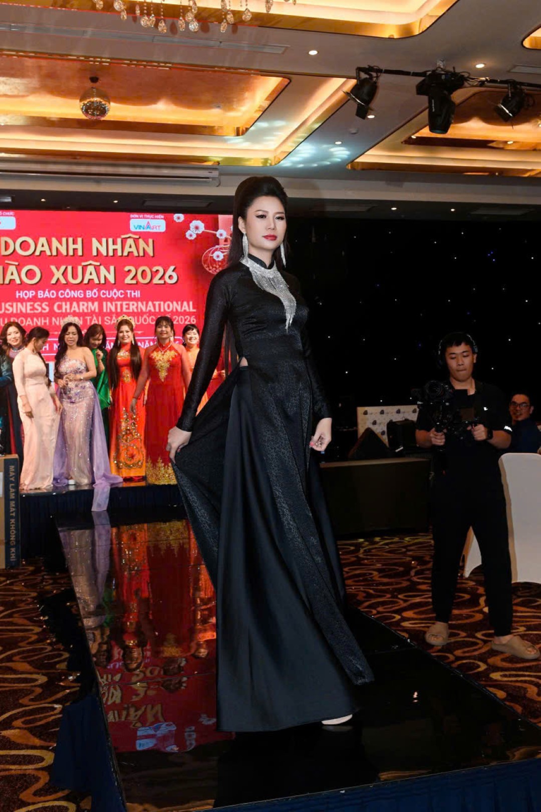 Người đẹp tham gia trình diễn áo dài trong khuôn khổ sự kiện Gala Doanh nhân Chào Xuân 2026